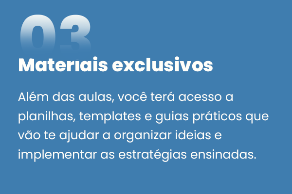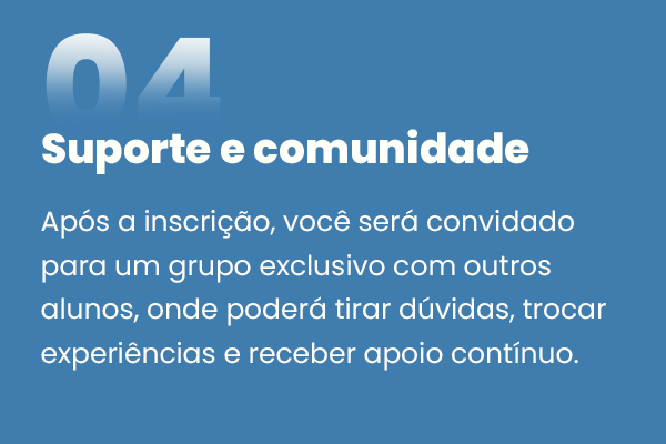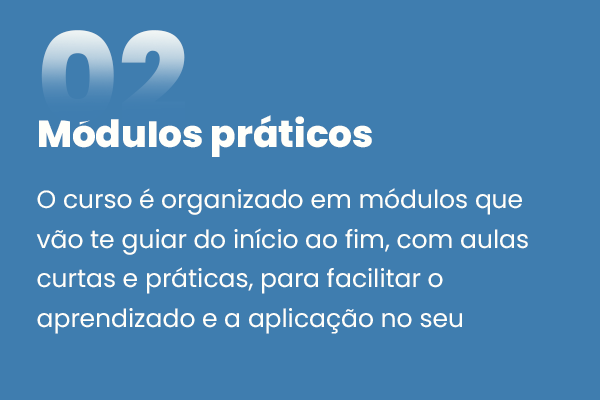 As aulas são objetivas e focadas no que realmente importa, permitindo que você avance no seu ritmo e aplique os aprendizados imediatamente.