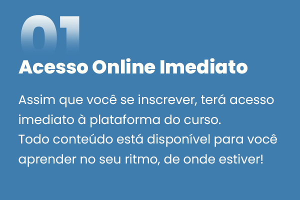 Após a inscrição, você terá acesso ao conteúdo conforme as regras da plataforma de hospedagem, podendo assistir às aulas quando e onde quiser, pelo computador, tablet ou celular.
